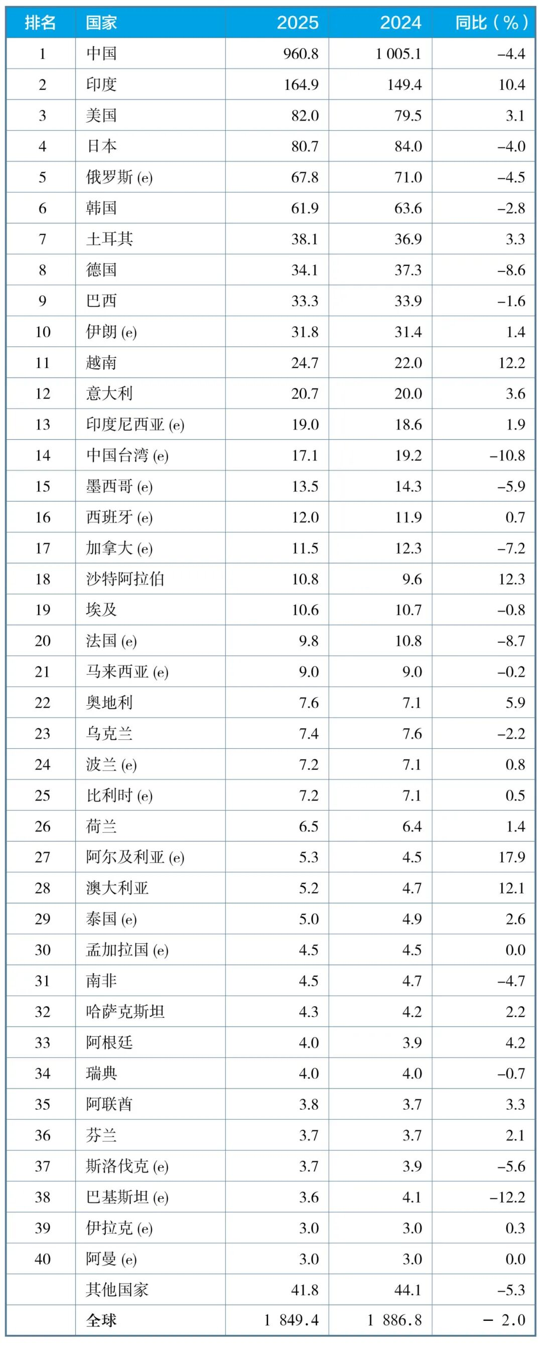 e - 預(yù)估值。排名依據(jù)為本年度累計(jì)粗鋼產(chǎn)量。