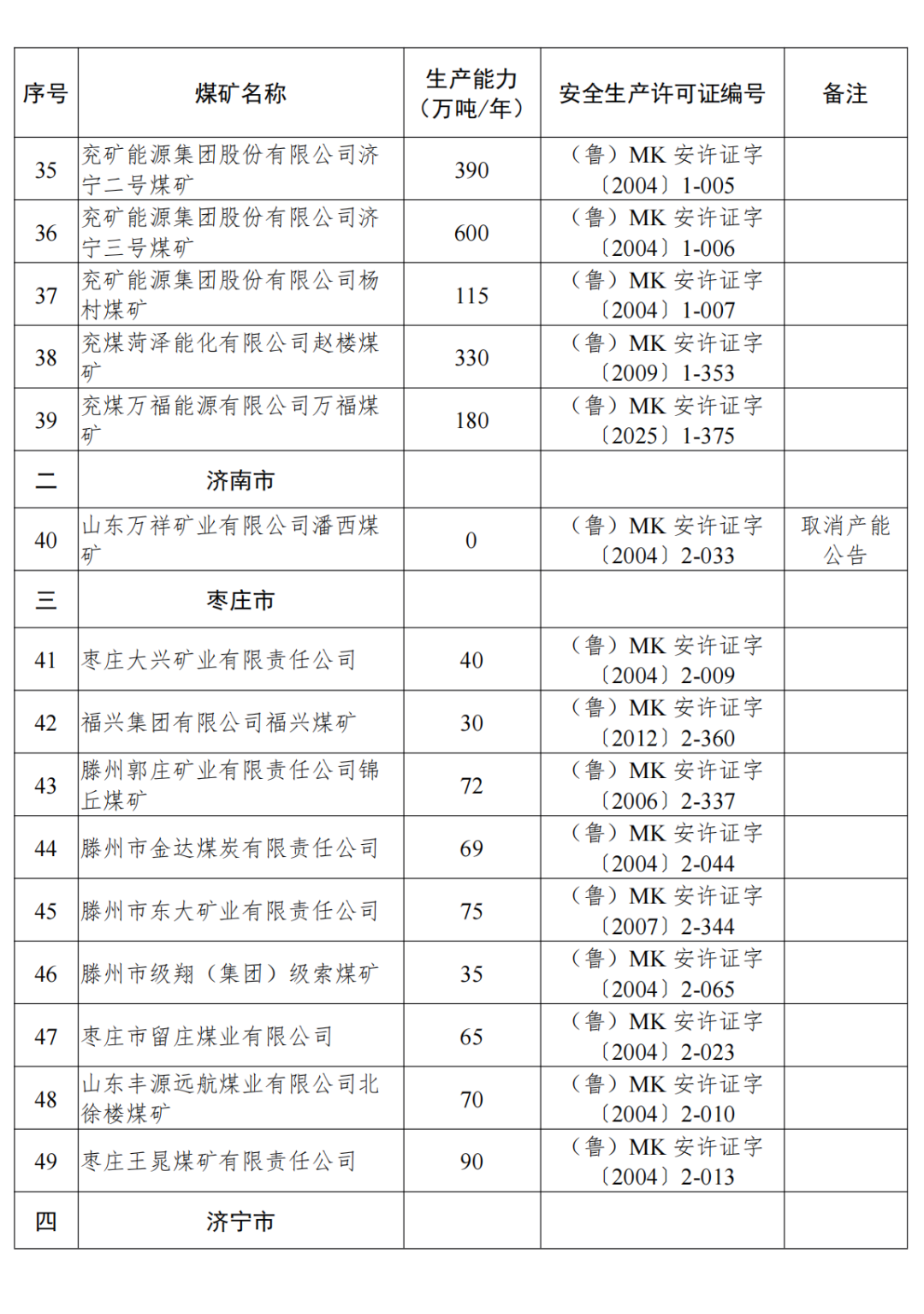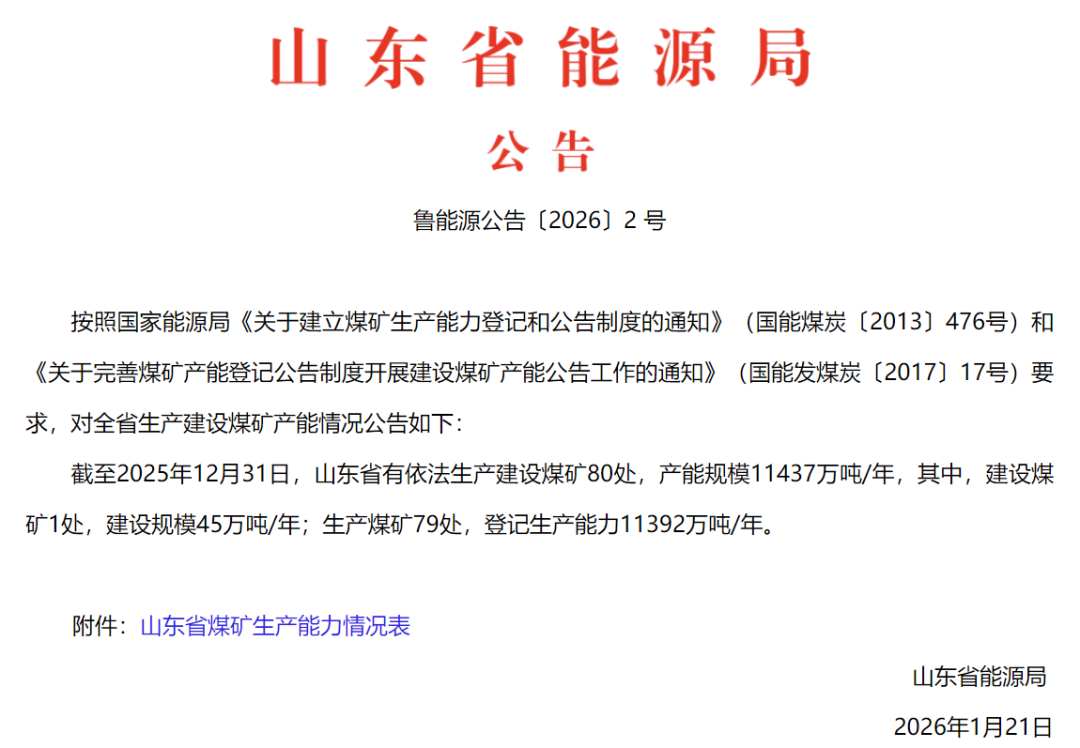 山東省有依法生產建設煤礦80處,產能規(guī)模11437萬噸年