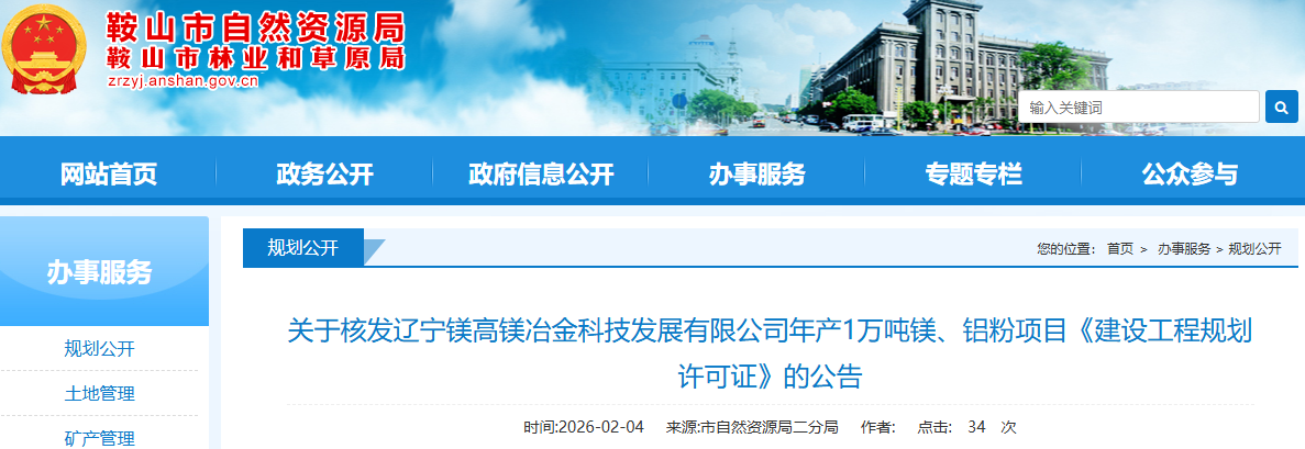 據(jù)《中華人民共和國(guó)城鄉(xiāng)規(guī)劃法》第四十條的有關(guān)規(guī)定,已依法核發(fā)遼寧鎂高鎂冶金科技發(fā)展有限公司年產(chǎn)1萬(wàn)噸鎂、鋁粉項(xiàng)目《建設(shè)工程規(guī)劃許可證》?,F(xiàn)將有關(guān)情況公告如下: